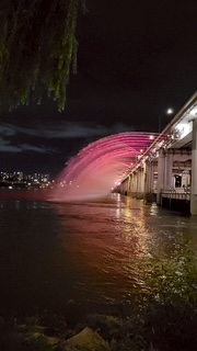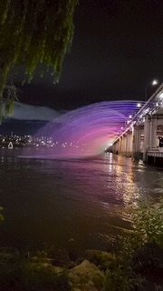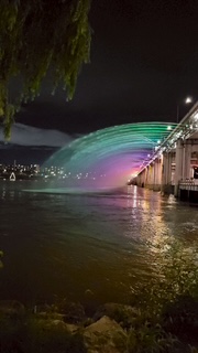 盤浦大橋から一斉に放水される月光レインボー噴水、ライトアップの色が変わり、きれいでした。