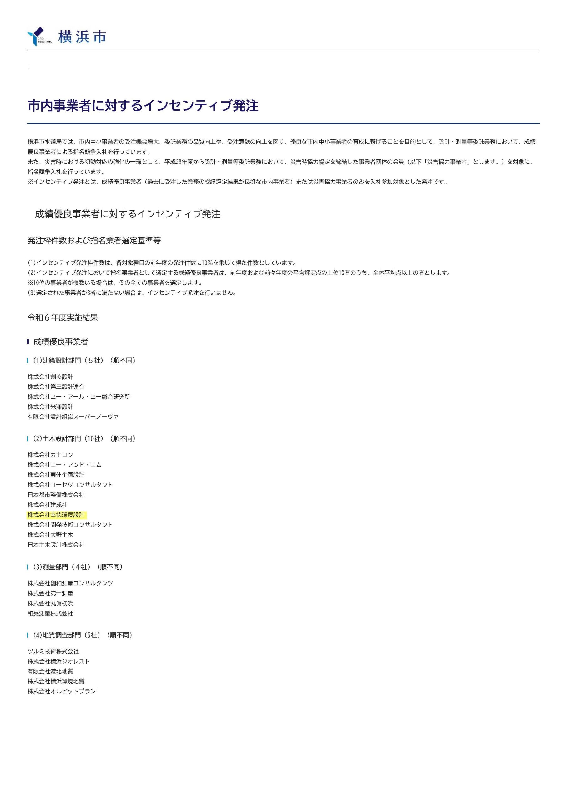「令和6年度 水道局成績優良事業者(土木設計部門)」に選ばれました